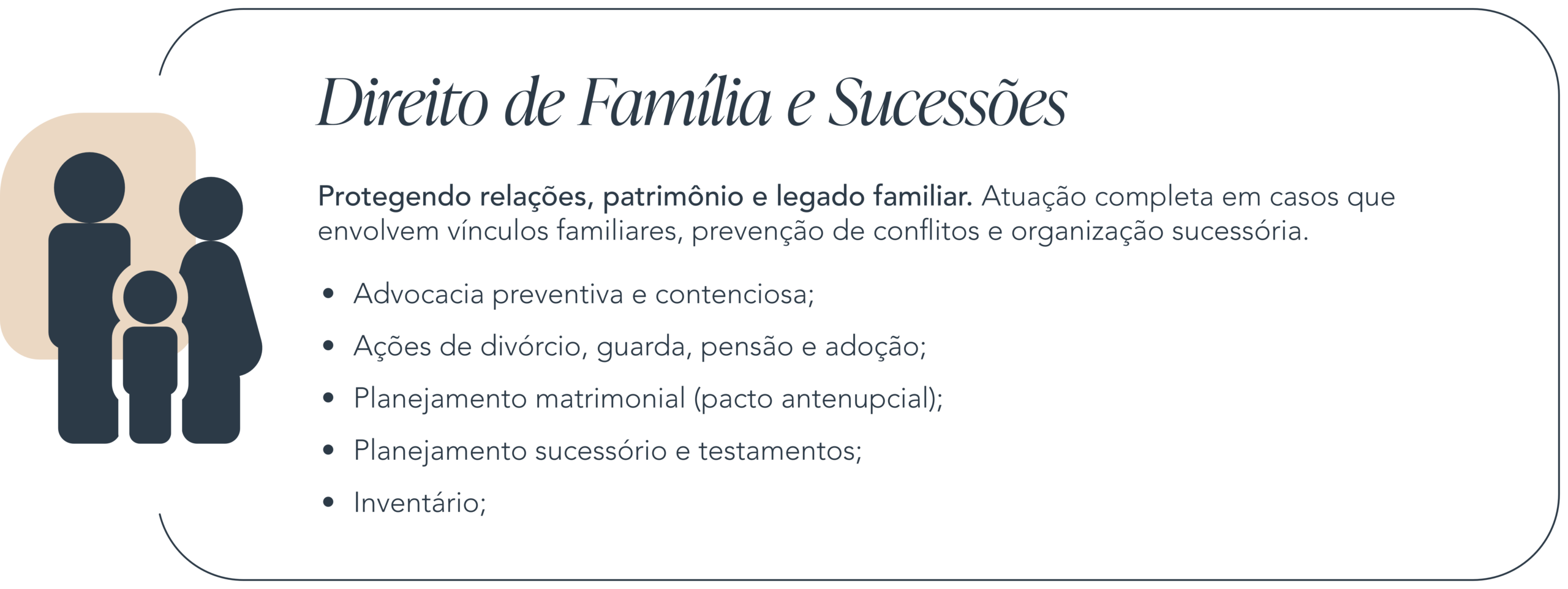 estratégica, ética e humanizada para resolver questões jurídicas complexas de famílias e empresários.